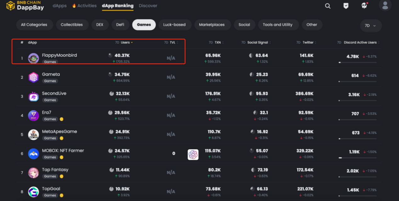 Racing Bird represents the second game in the FlappyMoonbird universe and was introduced earlier this year. The first game, FlappyMoonbirds, captivated players with its entertaining bird-jumping gameplay, where players skillfully maneuvered their birds to overcome obstacles, unlocking generous rewards along the way. Thanks to its simplistic yet competitive design, the number of players steadily grew, earning FlappyMoonbird a prominent spot in the BNBChain gaming and application charts for monthly activity. The gaming industry also recognized FlappyMoonbird's achievements, listing it as one of the Top 10 Recommended Games on BNBChain in March of the same year. Furthermore, the platform showcased phenomenal user growth and weekly active users on BNB Chain's DappBay in May, commanding an impressive 11.3% of 30-day user dominance on the BNB chain.