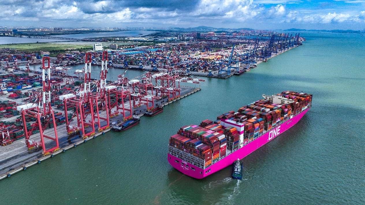 Photo shows a busy container terminal at the Nansha port in Guangzhou, south China's Guangdong province. (People's Daily Online/Chen Zhiqiang)