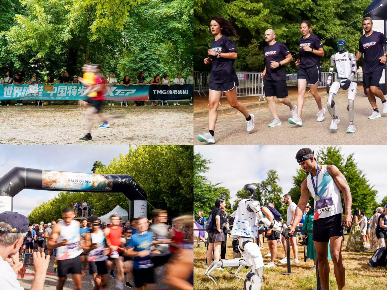 On June 29, 2025, the Running at the Castle of Versailles, known for its historical significance and the most royal of the races, took place in the picturesque setting of Versailles, France. This year's event witnessed an unprecedented collaboration between a Chinese sports brand XTEP and a robot technology firm Unitree Technology, adding a futuristic twist to the traditional race.