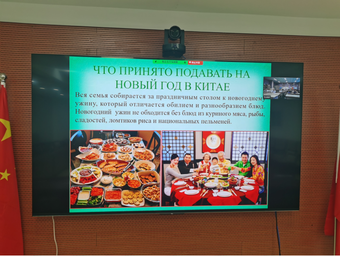 The teaching instructor introduced the Russian students to the origins of Chinese New Year and the unique Chinese Zodiac culture. He elaborated on the symbolism and significance of the twelve zodiac signs, sparking the students’ curiosity about Chinese cultural elements. Subsequently, the instructor showcased traditional Chinese bridal sedan chairs and New Year paintings, explaining the traditional customs observed during the Chinese Spring Festival.