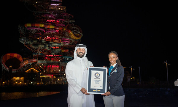 LUSAIL,Qatar,Dec. 3,2024 -- Qetaifan Projects,a subsidiary of Katara Hospitality,proudly announced that "The RIG 1938" was officially recognized by Guinness World Records™ for two records the first one being the tallest water slide,standing at 76.309 metres,and the second award is the first of its kind to feature 12 water slides in one tower. The announcement was made by H.E Sheikh Nasser bin Abdulrahman Al-Thani,Managing Director and Chairman of Qetaifan Projects,during a press conference held at the shores of Meryal Water Park on Qetaifan Island North. The event was attended by the Qetaifan Projects team,Rixos Hotel representatives,esteemed dignitaries,investors,and media professionals.