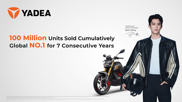 BEIJING,Dec. 31,2024 -- Yadea (01585.HK),the world's leading electric two-wheeler brand,has reached an extraordinary milestone,surpassing 100 million global sales of electric two-wheelers. Alongside this remarkable achievement,Yadea officially announced Dylan Wang as its global brand ambassador. These important moments mark a new era and a new height in Yadea's development.