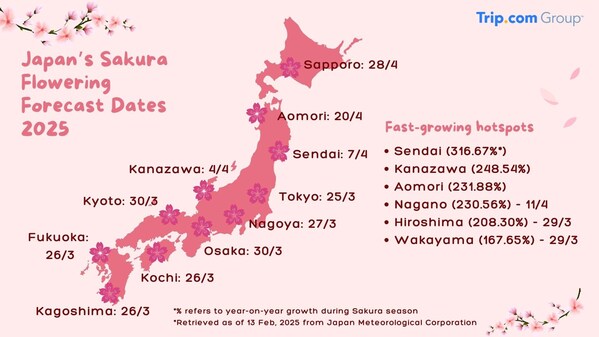 SINGAPORE,Feb. 24,2025 -- As cherry blossoms begin to bloom as March approaches,travellers seeking a less-crowded sakura spotting experience are flocking to lesser-known cities in Japan to get their flower fix. While the Japanese cherry blossomseason remains a top draw,this year,bookings for off-the-beaten-path and alternative locations beyond Japan are seeing significant growth,reflecting the rising demand for more peaceful and unique experiences in the heart of spring.