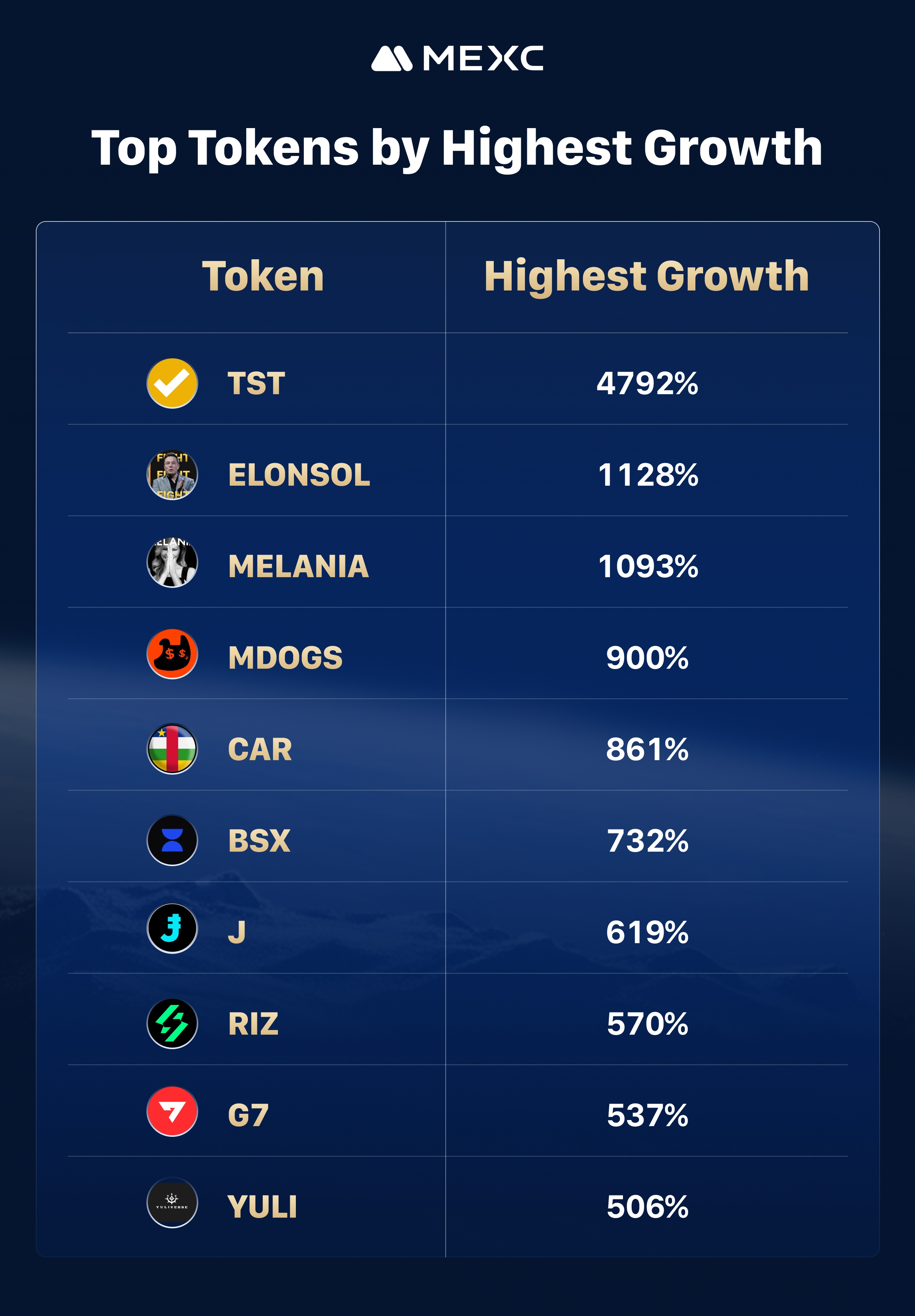 Four of the five best-performing tokens — TST, ELONSOL, MELANIA, and CAR — were linked to public figures, driven by the power of social trends.