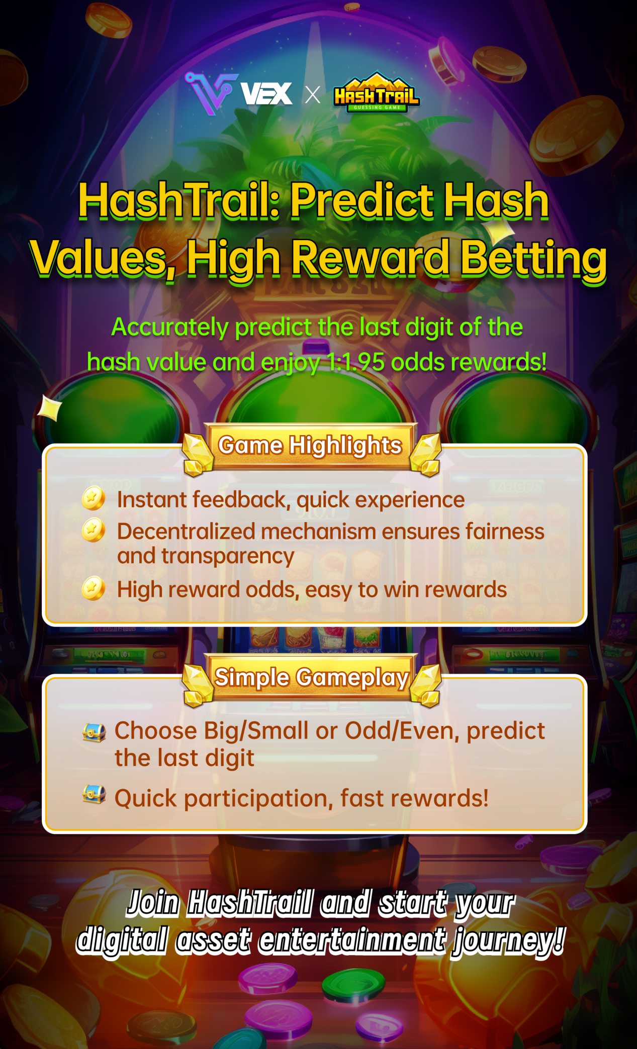 As blockchain technology continues to evolve rapidly, VEX is once again leading the wave of industry innovation with the launch of a brand-new decentralized game — HashTrail. With its groundbreaking decentralized design, HashTrail delivers a thrilling digital asset prediction experience while injecting fresh momentum into the VEX platform ecosystem.