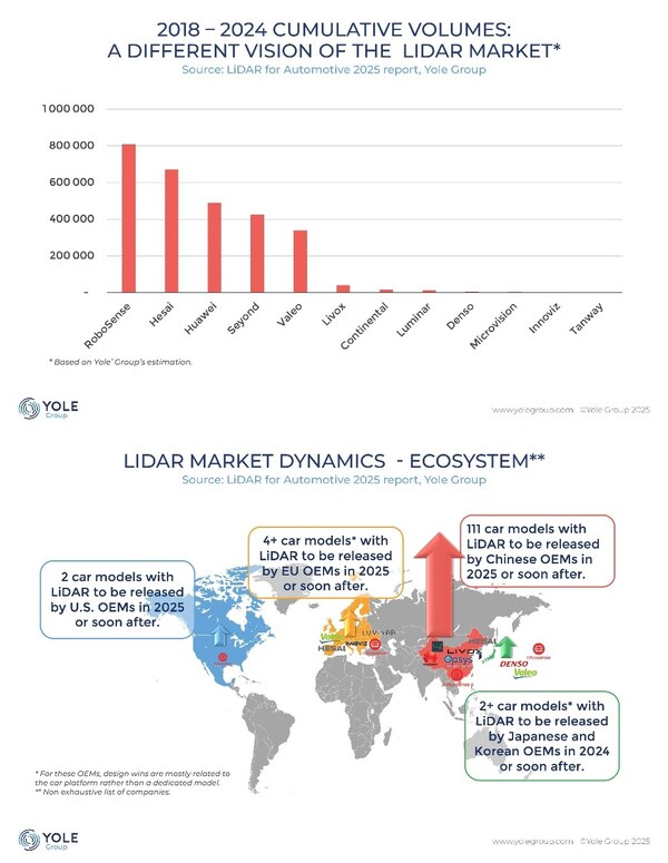 RoboSense Ranked No. 1 in Global Passenger Car LiDAR Market Share, Annual and Cumulative Sales in 2024 | Yole Annual Report